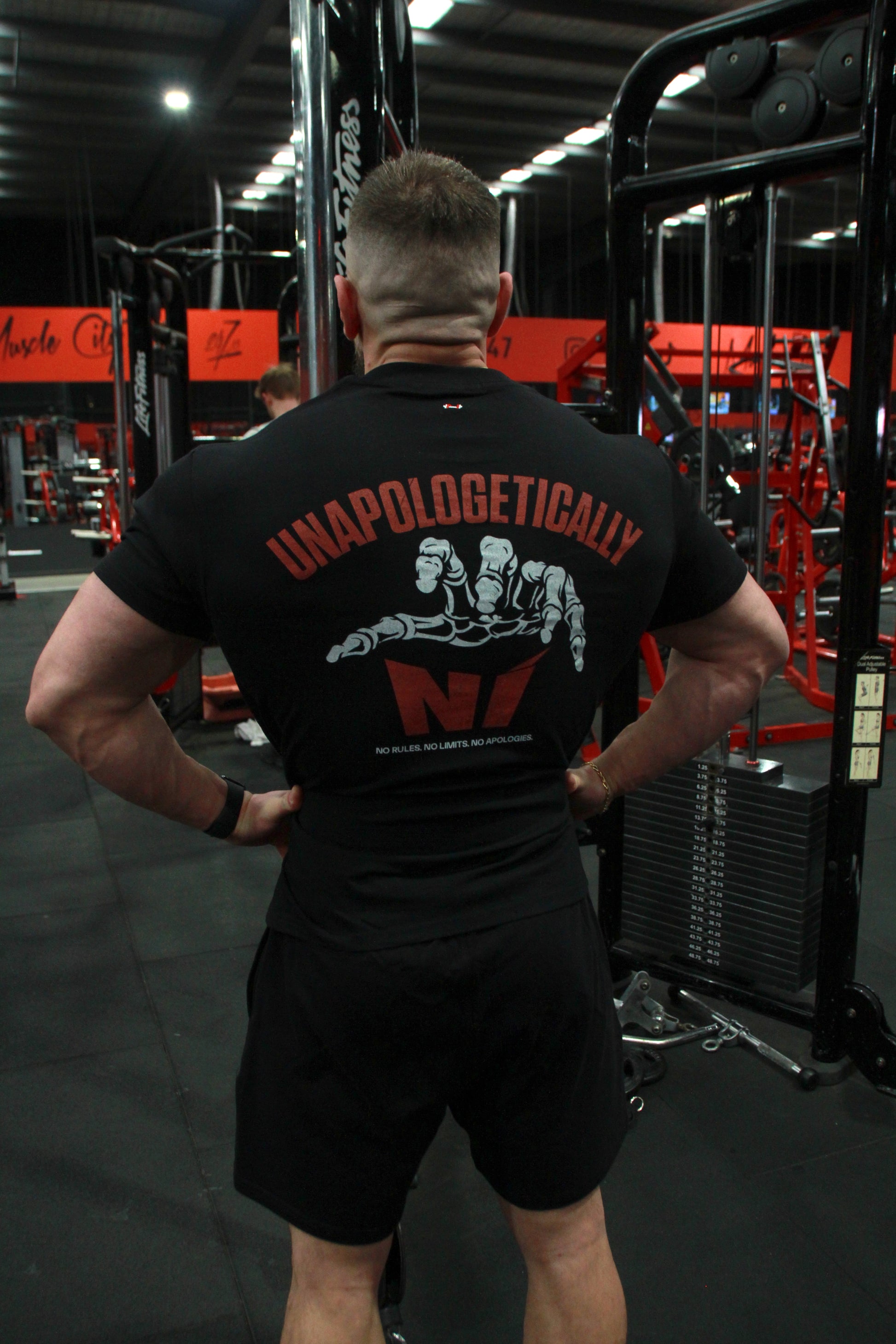 - Back graphic: “No rules. No limits. No apologies.”